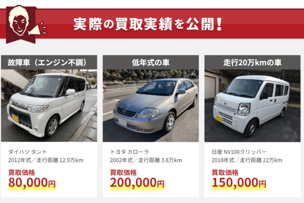 実際に、事故をしてボロボロになったトヨタのヤリスも225,000円で買い取ってくれています。