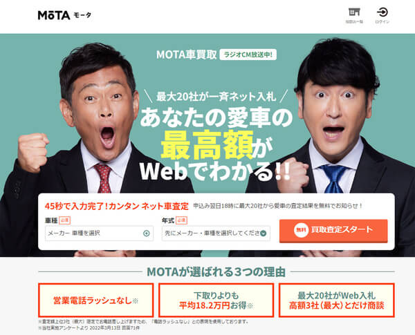 オススメの車の一括見積もりサービスは「MOTA車買取」です。